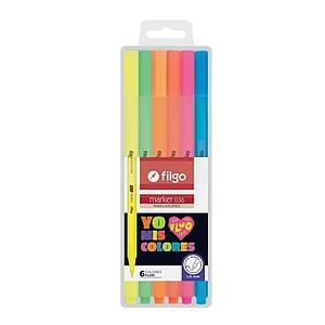 MARCADOR FILGO FLUO TRAZO FINO 036 X 6 COLORES