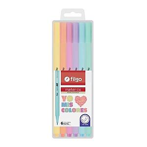 MARCADOR FILGO PASTEL TRAZO FINO 036 X 6 COLORES