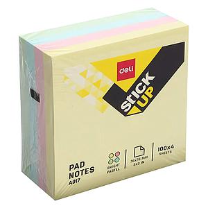 NOTAS ADHESIVAS DELI 400 HOJAS PASTEL 76 X 76 MM.